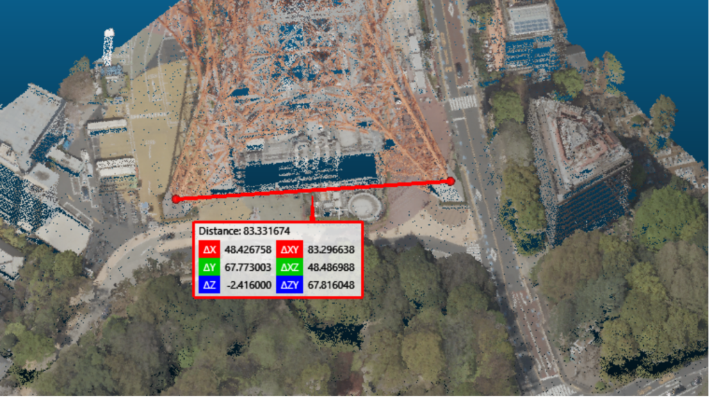 点群を用いる最大のメリットは、現実世界の正確な大きさをデジタル上で測れることです。