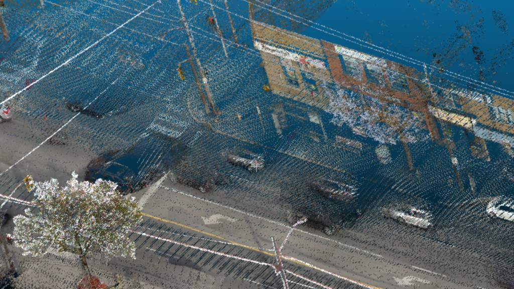 一つひとつの点は、位置情報(X, Y, Z)色情報(R, G, B)を持っています。これらが数百万〜数億個集まることで、まるで写真や立体模型のように物体の形を再現します。