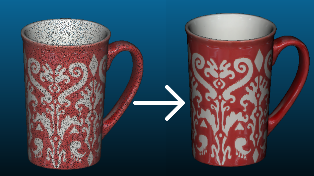 - 穴埋め機能がある: スキャンしきれなかった死角などのデータの欠損を自動的に補完し、閉じたメッシュを作るのが得意です