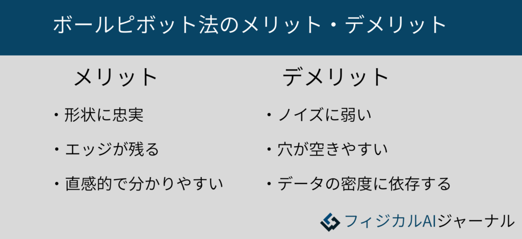| 特徴 | ポアソン法 | ボールピボット法 |